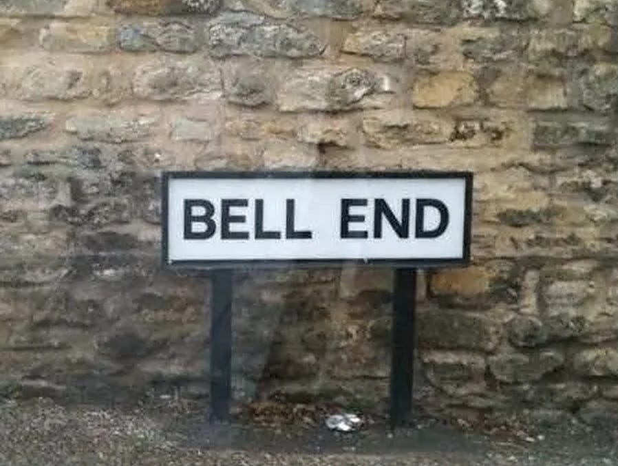 How now; my mind leaps to a vivid image, deeply embedded in the recesses of this cluttered mind. It was the UK; there was no doubt about it, no question. Can you believe it? A street sign nestled against a charming stone wall, if my recollection is true. The sign is decorated with profanity. Bell End. Yes, you read it correctly. Bell End. The UK has Roads and Streets, as well as Avenues; then there are Ends, an affix that begs creative manipulation. Here, your proof.