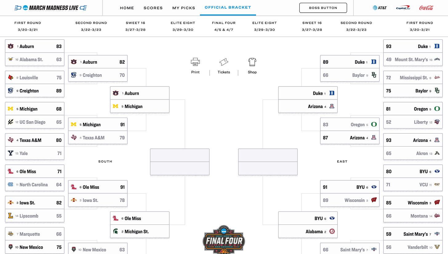 Last weekend, 64 teams entered the 2025 Men's NCAA Tournament; now, only 16 remain.