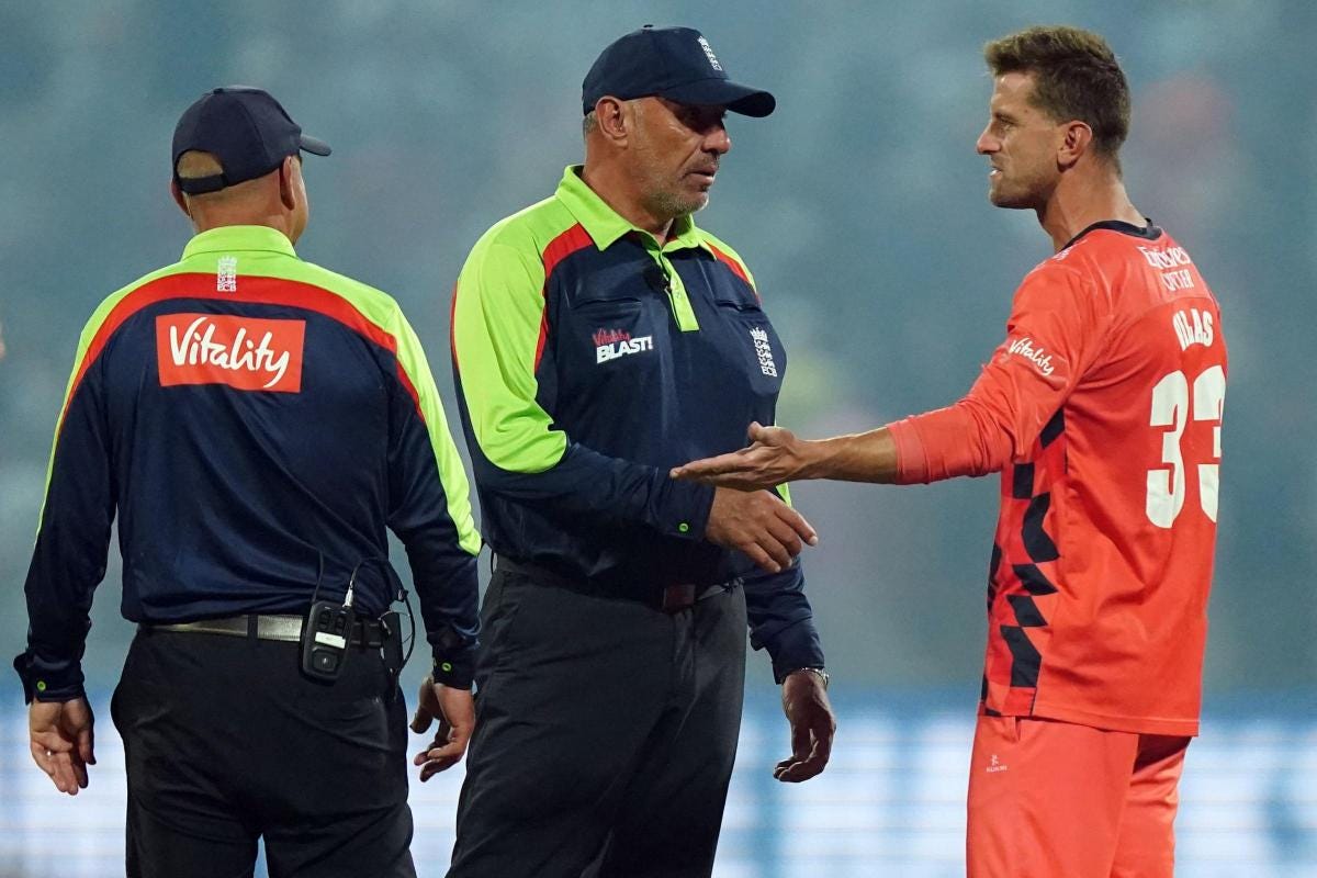 Hampshire are T20 Blast Vitality champions. Players, rightly seeking their opposition to shake hands, some go to the umpires thanking them for their participation. As you do. Fireworks are given a second work-out, and the same smoke hangs around. In the back-ground, though, it seems Gleeson and Hartley sense an opportunity to run again. Almost like ‘electric cricket’ in the school-yard. ‘Is there anyone watching’ you can almost hear their minds working. They did, in the back-drop of what should have been happening. Hampshire reacted as if to protect what they knew was there’s - and the rest got very muddled for some.